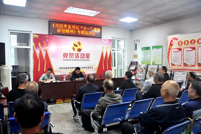 宣講活動中,各支部通過邀請隊(duì)領(lǐng)導(dǎo)做輔導(dǎo)報(bào)告、支部書記講黨課、觀看線上深度解析講座等多種方式,全面闡釋習(xí)近平總書記“七一”重要講話的重大意義、豐富內(nèi)涵、精神實(shí)質(zhì)和實(shí)踐要求。系統(tǒng)講解講話中提出的一系列新思想新觀點(diǎn)新要求。深入解讀中國共產(chǎn)黨百年奮斗的光輝歷程、偉大成就、寶貴經(jīng)驗(yàn)和實(shí)踐啟示,解讀偉大建黨精神的深刻內(nèi)涵和時(shí)代價(jià)值,解讀在新征程上以史為鑒、開創(chuàng)未來的根本要求。同時(shí),要求全體黨員干部要把“七一”講話精神作為當(dāng)前和今后一個(gè)時(shí)期的一項(xiàng)重大政治任務(wù)抓緊抓實(shí)。原原本本讀原文,認(rèn)認(rèn)真真悟原理,切實(shí)增強(qiáng)學(xué)習(xí)貫徹的政治自覺、思想自覺、行動自覺。緊密圍繞地勘工作,把學(xué)習(xí)貫徹“七一”講話精神同學(xué)習(xí)貫徹習(xí)近平總書記關(guān)于學(xué)習(xí)和總結(jié)黨的歷史的重要論述結(jié)合起來,同持續(xù)深入推動黨史學(xué)習(xí)教育結(jié)合起來,切實(shí)把學(xué)習(xí)成果轉(zhuǎn)化為奮進(jìn)新征程、建功新時(shí)代的實(shí)際行動,轉(zhuǎn)化為提升工作本領(lǐng)、支撐服務(wù)政府、推動地勘單位改革發(fā)展的實(shí)際成效。