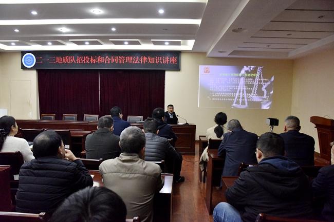 10月27日,二一三隊舉辦了招投標和合同管理法律知識專題輔導講座,邀請山西華堯律師事務所董事會主席李選生律師作專題輔導。在隊40余名干部職工參加會議。