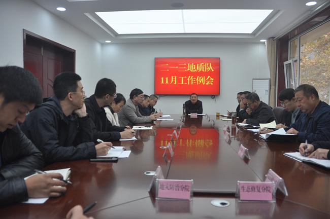 11月3日,二一三地質(zhì)隊(duì)召開11月工作例會(huì)。隊(duì)領(lǐng)導(dǎo)和隊(duì)屬經(jīng)營實(shí)體負(fù)責(zé)人參加了會(huì)議。姚文兵隊(duì)長主持會(huì)議并做了重要講話。