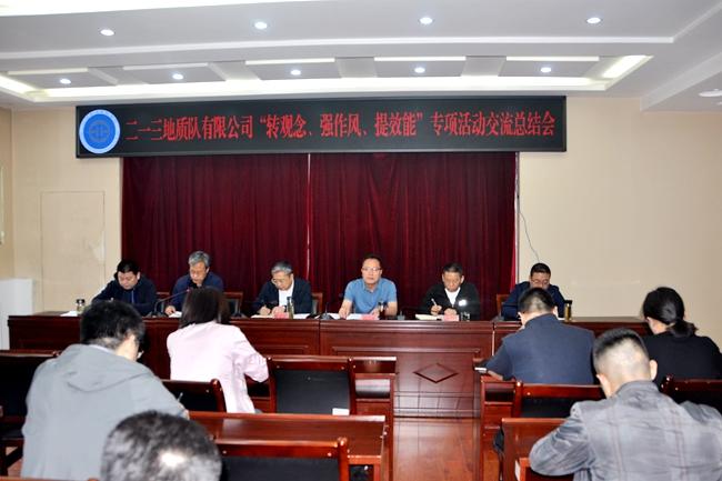 5月9日,二一三地質(zhì)隊(duì)有限公司召開“轉(zhuǎn)觀念、強(qiáng)作風(fēng)、提效能”專項(xiàng)活動(dòng)交流總結(jié)會(huì)議,傳達(dá)學(xué)習(xí)彭東曉局長(zhǎng)在全局專項(xiàng)活動(dòng)交流總結(jié)上的重要講話,交流總結(jié)公司專項(xiàng)活動(dòng)開展情況及主要成效,對(duì)持續(xù)鞏固深化拓展專項(xiàng)活動(dòng)成果作具體安排。公司黨委書記、董事長(zhǎng)姚文兵出席會(huì)議并講話,黨委副書記、副董事長(zhǎng)、總經(jīng)理趙江濤主持會(huì)議。