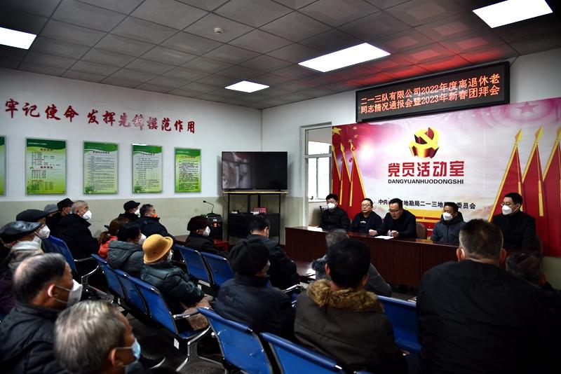 在新春佳節(jié)來(lái)臨之際,1月17日,二一三地質(zhì)隊(duì)有限公司召開(kāi)了離退休老同志情況通報(bào)會(huì)暨2023年新春團(tuán)拜會(huì)。全體班子成員與離退休老干部、老黨員代表歡聚一堂,喜迎新春。公司黨委書(shū)記、董事長(zhǎng)趙江濤主持會(huì)議。