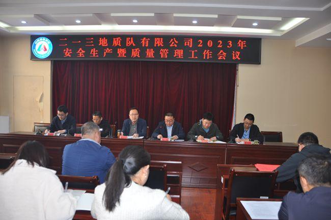 4月28日,二一三地質(zhì)隊有限公司召開2023年安全生產(chǎn)暨質(zhì)量工作會議。公司領(lǐng)導(dǎo)、安委會成員、各管理部門和經(jīng)營單位負責(zé)人參加會議。會議由馬亮總經(jīng)理主持。