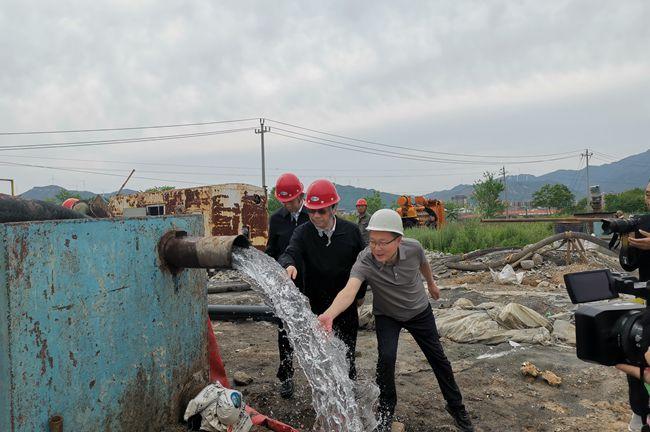 在施工現(xiàn)場,王焰新院士詳細了解了地熱井施工情況,認真查看了取上的巖芯,并親自測試了抽水溫度。隨后,在施工現(xiàn)場召開了座談會。