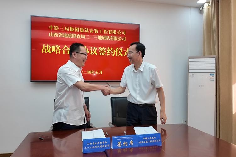 5月14日上午,中鐵三局集團(tuán)建筑安裝工程有限公司和二一三地質(zhì)隊(duì)有限公司舉行戰(zhàn)略合作協(xié)議簽約儀式。