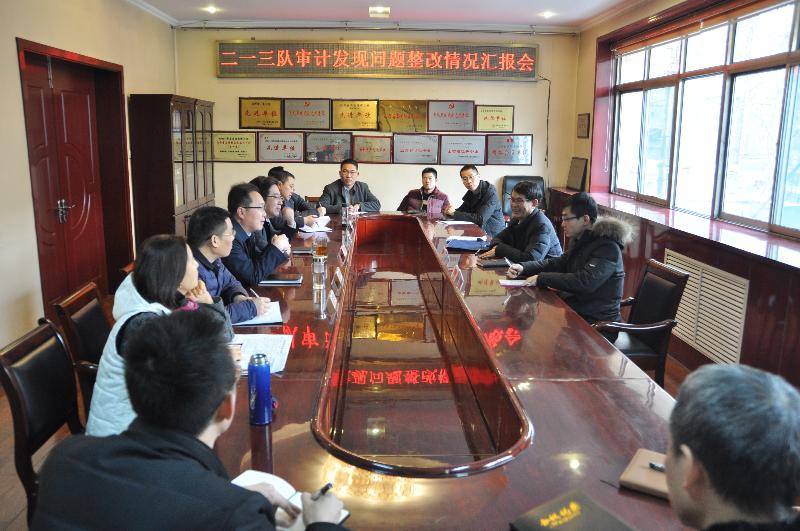 12月29日, 局審計整改領(lǐng)導(dǎo)組辦公室成員、局海外公司副總經(jīng)理岱兵奎,局經(jīng)營處張柯楠一行二人到二一三隊督查指導(dǎo)審計整改工作,并召開座談會。二一三隊領(lǐng)導(dǎo)及相關(guān)科室負責(zé)人參加會議。
