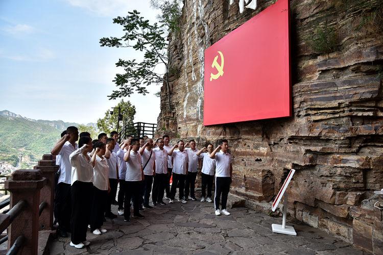 “我志愿加入中國共產(chǎn)黨,擁護黨的綱領(lǐng),遵守黨的章程……”全體黨員面對鮮紅的黨旗莊嚴地舉起右手,重溫入黨誓詞,牢記初心使命,砥礪奮發(fā)前行。入黨誓詞激蕩著紅旗渠水,回響在太行山間。