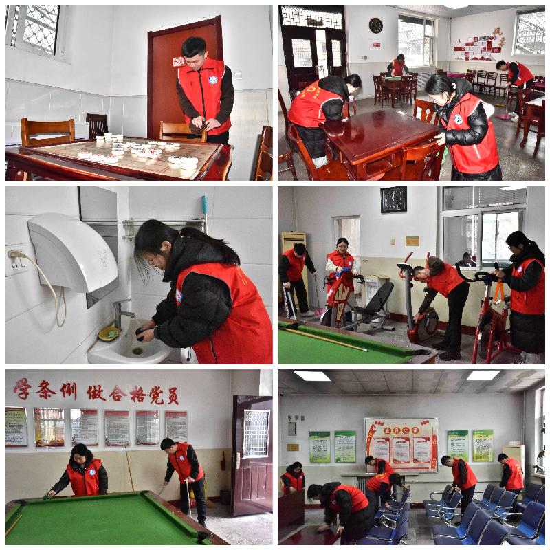 活動(dòng)現(xiàn)場,志愿者們手持掃帚、拖把、抹布等清潔工具,對離退休職工活動(dòng)室進(jìn)行全方位深度清潔,大家分工協(xié)作,有的擦拭門窗玻璃,有的清理衛(wèi)生死角,有的對地面進(jìn)行消毒。特別是在清理健身器材時(shí),志愿者們細(xì)致地用酒精將每個(gè)把手、踏板進(jìn)行擦拭消毒,不放過任何一個(gè)死角。經(jīng)過大家的辛勤勞動(dòng),活動(dòng)室面貌煥然一新。