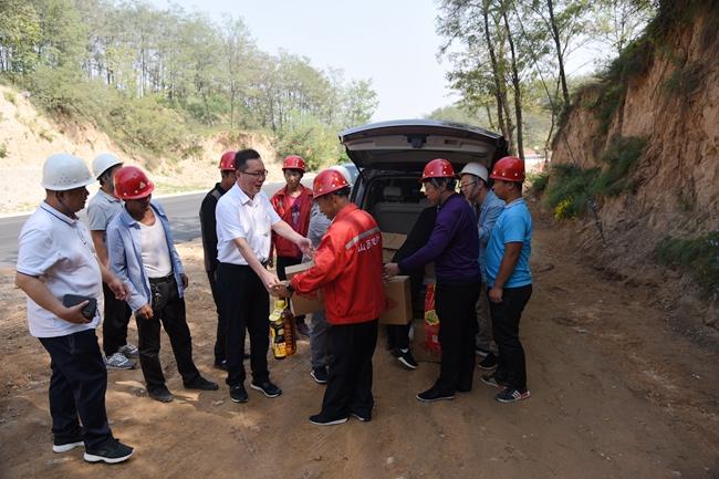 在中華人民共和國(guó)70周年來臨之際,9月30日上午,二一三隊(duì)黨委書記趙江濤、副隊(duì)長(zhǎng)刁翊及相關(guān)科室工作人員一行前往汾西縣對(duì)竹鎮(zhèn)康和村扶貧井水井工程施工現(xiàn)場(chǎng),為節(jié)日期間仍然奮戰(zhàn)在野外生產(chǎn)一線的職工送去了節(jié)日的祝福和慰問品。