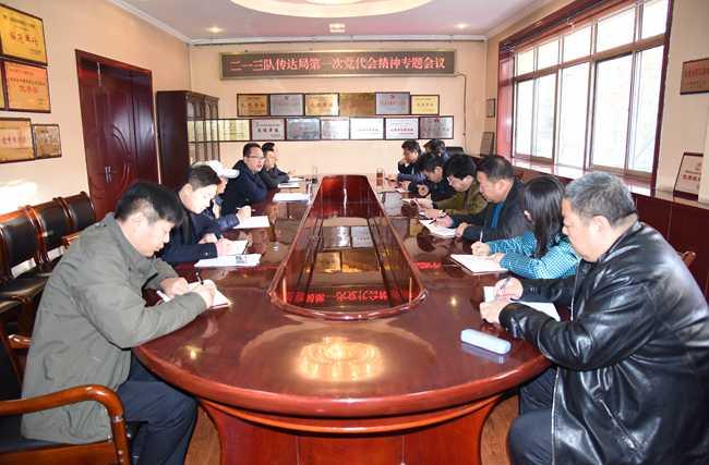 12月6日上午,二一三隊召開會議,傳達學習局第一次黨代會精神,隊領導班子成員、隊屬各黨支部書記參加會議,隊黨委副書記趙江濤主持。