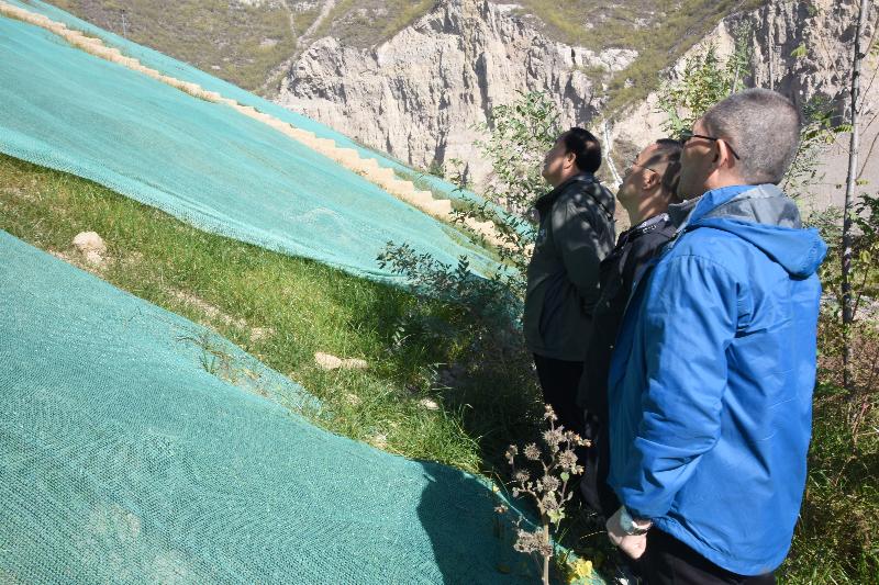 10月27日, 省地質環(huán)境監(jiān)測中心主任劉瑾、中鐵太原勘察設計研究院教授級高工魏放一行二人到二一三隊調研巖石復綠生態(tài)修復技術應用情況。