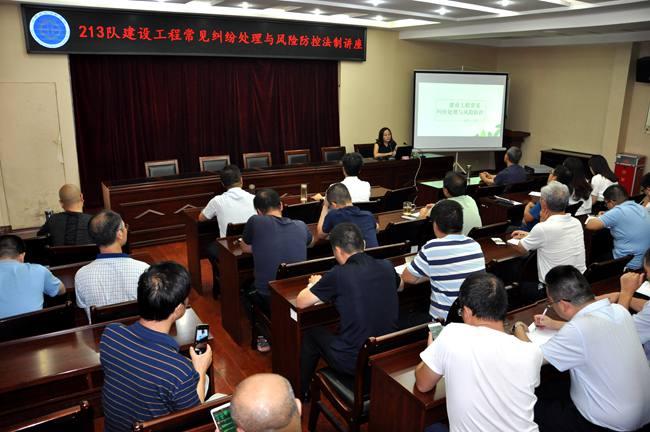為提高全隊(duì)干部職工法律風(fēng)險(xiǎn)防范意識(shí)。8月30日下午, 二一三隊(duì)舉辦法律專項(xiàng)培訓(xùn)會(huì),邀請(qǐng)隊(duì)法律顧問李華律師就建設(shè)工程施工常見糾紛處理和風(fēng)險(xiǎn)防控進(jìn)行了專題講座。隊(duì)領(lǐng)導(dǎo)班子成員及生產(chǎn)經(jīng)營(yíng)單位50余人參加講座。