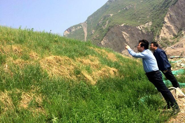 4月27日,二一三隊(duì)隊(duì)長(zhǎng)杜玉河、黨委副書記趙江濤深入龍祠泉地質(zhì)災(zāi)害環(huán)境修復(fù)治理項(xiàng)目施工現(xiàn)場(chǎng)調(diào)研指導(dǎo)工作,項(xiàng)目負(fù)責(zé)人和辦公室相關(guān)人員陪同調(diào)研。