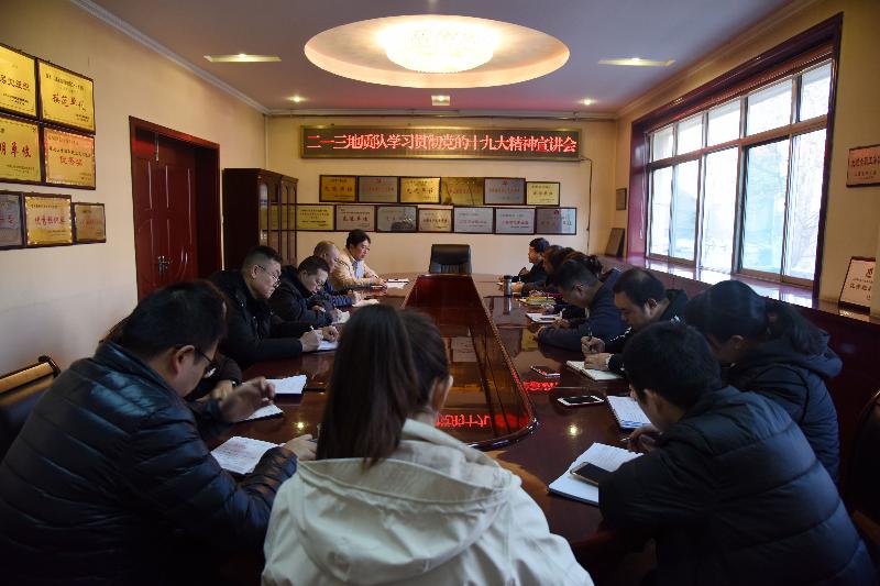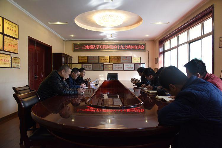 為更好地學(xué)習(xí)宣傳貫徹黨的十九大精神,在全隊(duì)范圍內(nèi)掀起學(xué)習(xí)宣傳貫徹黨的十九大精神熱潮,根據(jù)上周隊(duì)黨委的統(tǒng)一安排部署,11月21日至11月27日,二一三隊(duì)6位黨委委員分別深入基層8個(gè)黨支部和野外一線開(kāi)展十九大精神主題宣講活動(dòng)。參加聽(tīng)講黨員干部職工近百人。