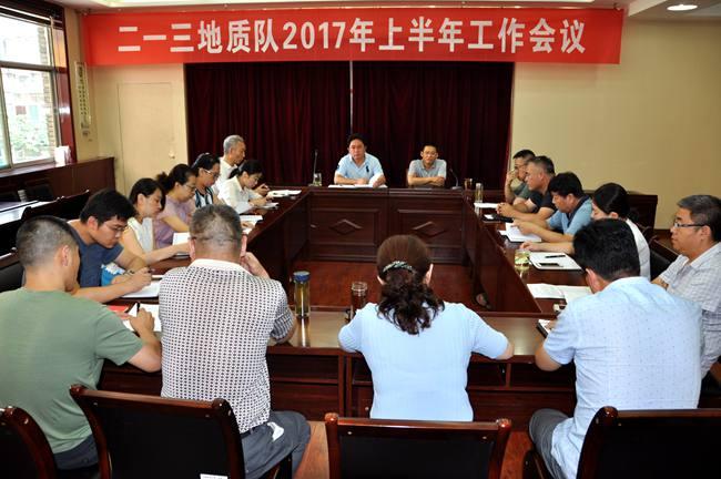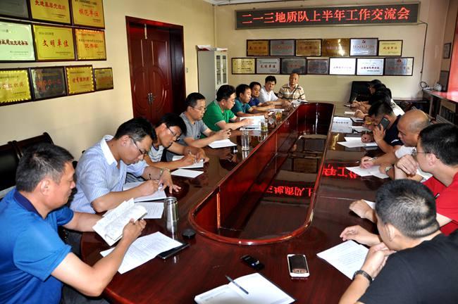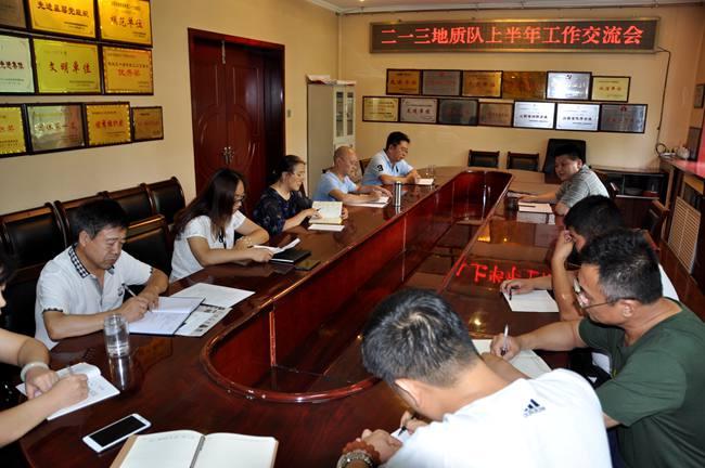 7月18日-25日,二一三地質(zhì)隊按照隊領(lǐng)導(dǎo)分工分5次組織召開了上半年工作會議。會議分別由黨委副書記趙江濤、總工程師呂福清、副隊長刁翊、紀(jì)委書記喬俊卿、副隊長施德剛主持,召集各自分管的經(jīng)營實體和機關(guān)部門副科以上中層干部參加,杜玉河隊長出席了這五次會議。