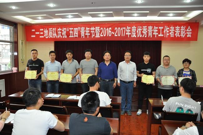 5月2日下午, 二一三隊在隊二樓會議室召開慶祝“五四”青年節(jié)暨2016~2017年度優(yōu)秀青年工作者表彰會,隊長杜玉河、黨委副書記趙江濤、黨辦主任徐顏兆與全隊70余名35周歲以下的青年職工歡聚一堂,共同紀念“五四”運動98周年。會議表彰獎勵了全隊7名優(yōu)秀青年工作者。