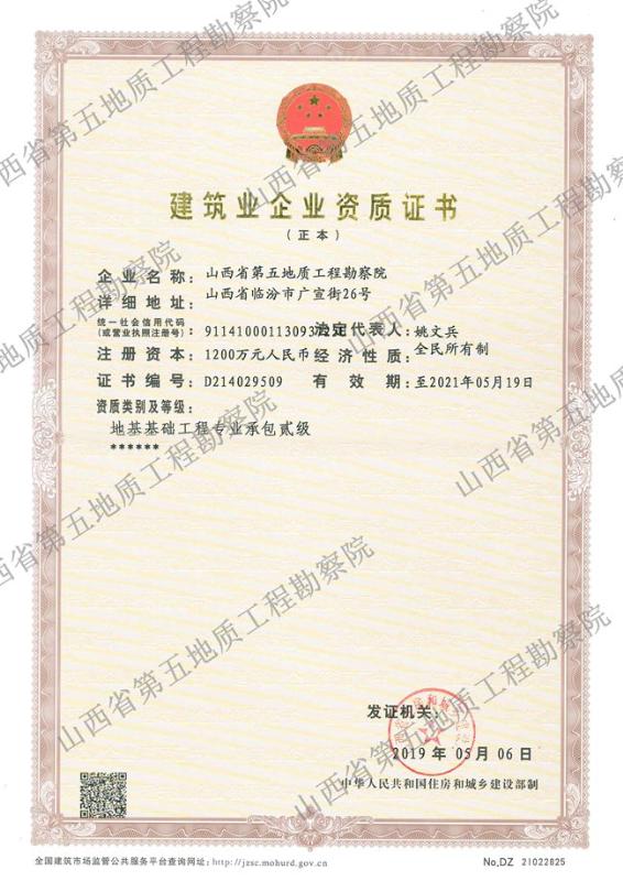 建筑業(yè)企業(yè)資質(zhì)證書(地基)