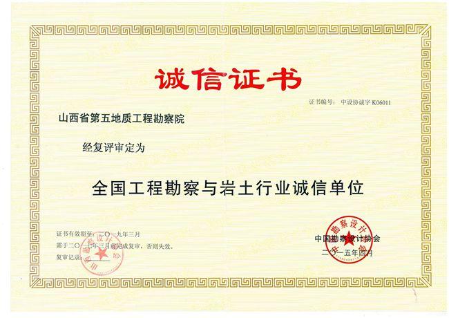 誠(chéng)信證書(部級(jí)、國(guó)家級(jí))