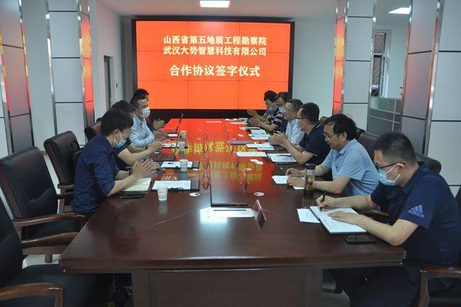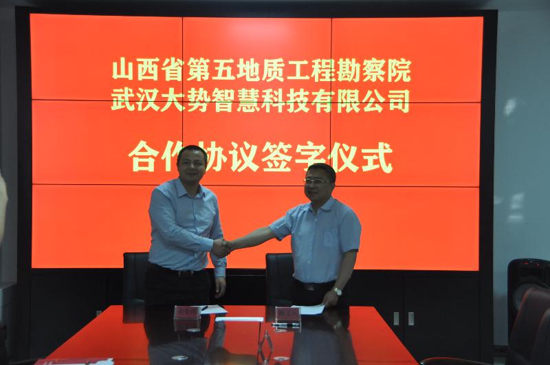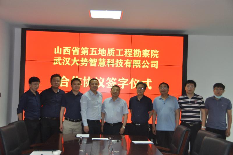 5月20日,五勘院與武漢大勢(shì)智慧科技有限公司簽署合作協(xié)議。五勘院院長(zhǎng)姚文兵和武漢大勢(shì)智慧科技有限公司CEO黃先鋒分別代表雙方簽約。大勢(shì)智慧副總經(jīng)理周濟(jì)安、五勘院黨委書記趙江濤、總工程師呂福清及雙方有關(guān)人員參加了簽字儀式。