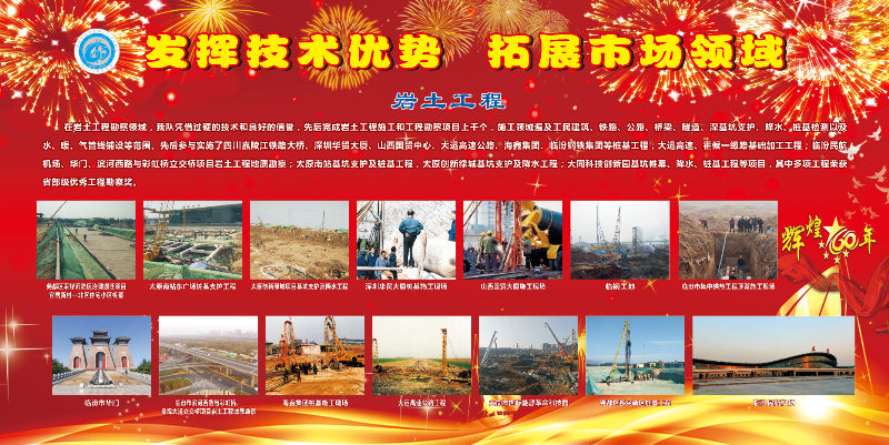 在巖土工程勘察領(lǐng)域,我隊(duì)?wèi){借過硬的技術(shù)和良好的信譽(yù),先后完成巖土工程施工和工程勘察項(xiàng)目數(shù)百個(gè),參與實(shí)施了嘉陵江鐵路大橋、深圳華貿(mào)大廈、山西國(guó)貿(mào)中心、大運(yùn)高速公路、海鑫基團(tuán)、臨汾鋼鐵集團(tuán)等樁基工程;大運(yùn)高速、霍候一級(jí)路基礎(chǔ)加工工程;臨汾民航機(jī)場(chǎng)、山西中南部貨運(yùn)道路、臨汾市華門巖土工程勘察;太原南站基坑支護(hù)、樁基工程,太原創(chuàng)新綠城基坑支護(hù)及降水工程;大同科技創(chuàng)新園基坑帷幕、降水、樁基工程等項(xiàng)目。